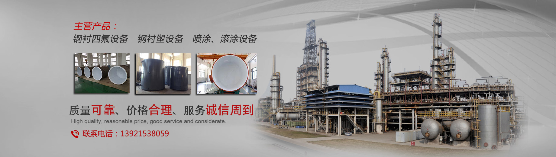 我公司專業(yè)生產(chǎn)防腐設(shè)備,主要產(chǎn)品有:鋼襯四氟、鋼襯四氟儲罐、反應(yīng)釜內(nèi)襯四氟、鋼襯四氟管道,四氟換熱器、PTFE襯里設(shè)備、鋼襯塑儲罐、鋼襯塑管道、攪拌槳等等。產(chǎn)品可應(yīng)用于化工、氯堿、海水淡化、印染、顏料、儲運、電廠、稀土、冶金、電子、制藥、釀造等行業(yè)...